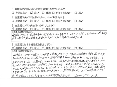 仕事があり夜8時以降の式を希望しましたが、すばやく対応していただき、お寺様も探していただき、私たちの希望が全てかなえられたお式を執り行うことができました。